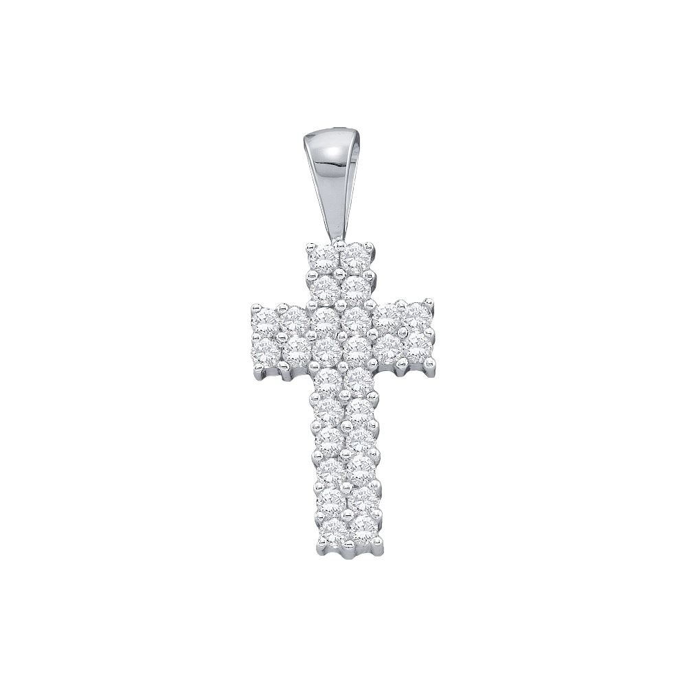 REF-22K4W- SKU: GD18597 ---- 0.25 CTW Diamond Simple Cross Pendant 14KT White Gold
