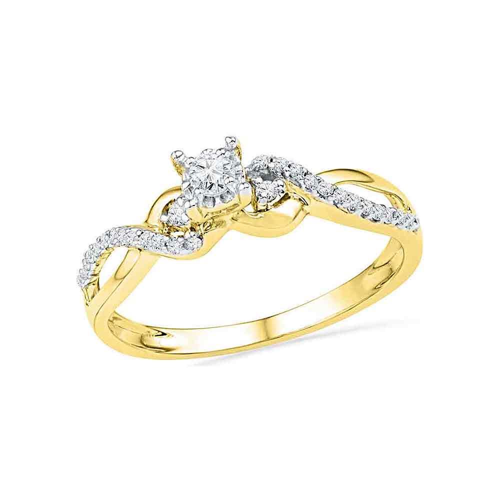 REF-22M4H- SKU: GD100422 ---- 0.25 CTW Diamond Solitaire Crossover Promise Bridal Ring 10KT Yellow Gold
