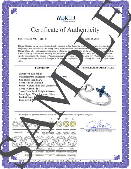 1. All Jewelry items sold are in Brand New Condition. WE AND THE CONSIGNOR DISCLAIM ANY AND ALL WARRANTIES, EXPRESSED OR IMPLIED, INCLUDING BUT NOT LIMITED TO THE IMPLIED WARRANTY OF MERCHANTABILITY OR FITNESS FOR ANY PARTICULAR PURPOSE. NO WARRANTIES ARE MADE THAT ANY OF THE MERCHANDISE COMPLIES WITH ANY APPLICABLE GOVERNMENTAL RULES, REGULATIONS OR ORDINANCES OF ANY KIND OR NATURE WHATSOEVER. All items are available for inquiries prior to bidding. Written and oral descriptions are our opinions and should in no way be construed as a guarantee of any kind as to authenticity, age, condition, materials or any other feature of items being sold. We attempt to catalog every lot correctly and will attempt to point out any defects but will not be responsible or liable for the correctness of the catalog or other descriptions of the lot. We recommend prospective bidders examine all items in which they have an interest. By placing a bid, either in person, by phone, absentee or via the Internet, you signify that you have examined the items as fully as you desire to or that you have chosen not to examine them. If you require absolute certainty in all areas of authenticity, and the results of your evaluation leave uncertainty in your mind, we recommend you have an expert examine the lot for you or do not bid on the item in question.