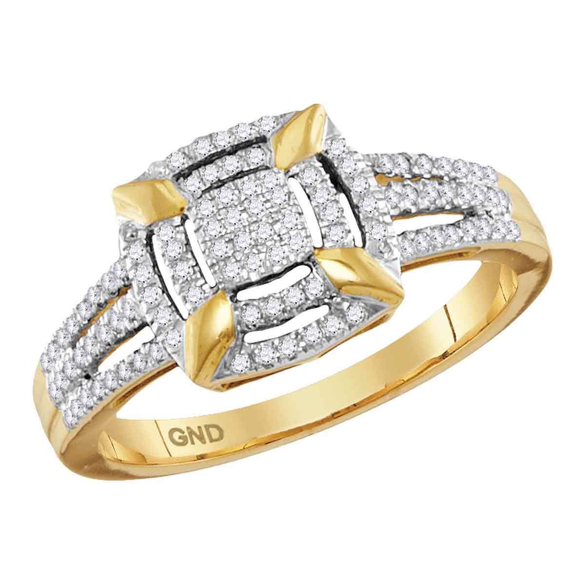 REF-30W2K- SKU: GD115148 ---- 0.25 CTW Diamond Square Cluster Ring 10KT Yellow Gold