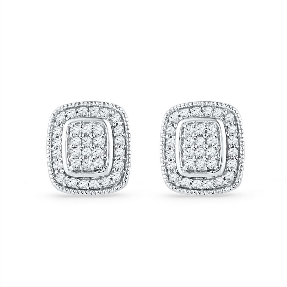 REF-19H4M- SKU: GD101942 ---- 0.25 CTW Diamond Square Cluster Stud Earrings 10KT White Gold