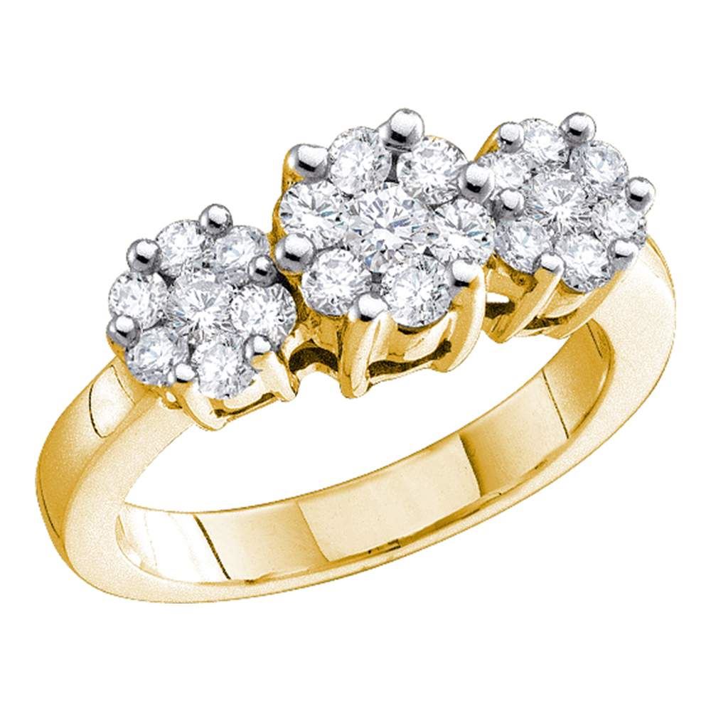 REF-32M9H- SKU: GD43648 ---- 0.25 CTW Diamond Triple Flower Cluster Ring 10KT Yellow Gold