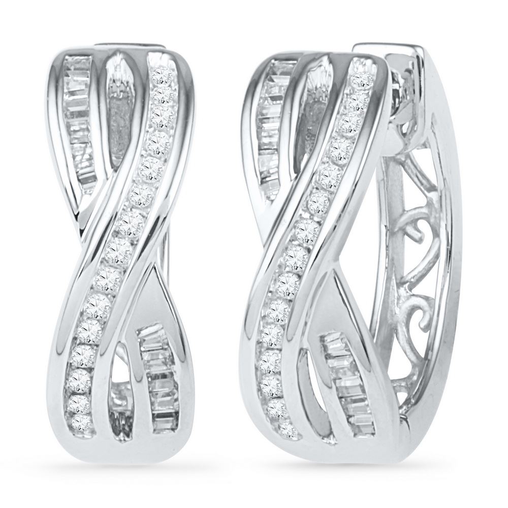 REF-25W4K- SKU: GD101804 ---- 0.25 CTW Diamond Two Row Crossover Hoop Earrings 10KT White Gold