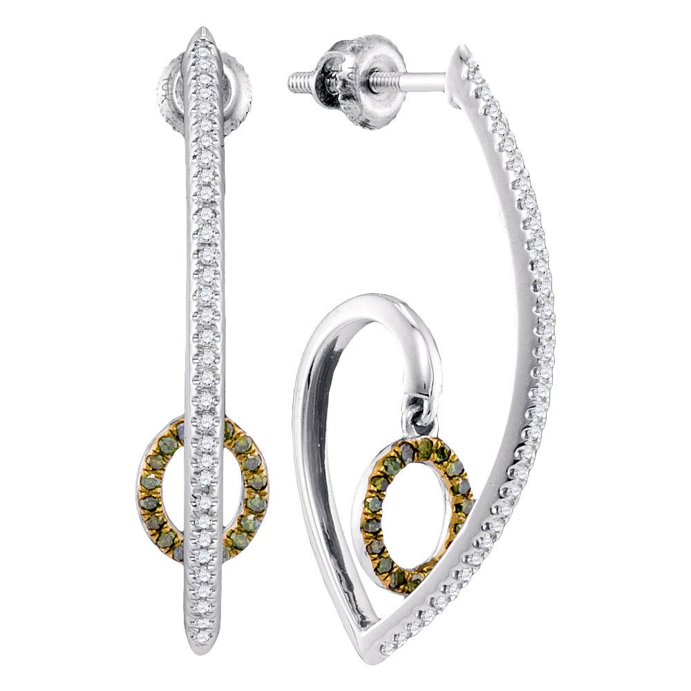 REF-37X5Y- SKU: GD97741 ---- 0.25 CTW Green Color Diamond J Hoop Oval Dangle Earrings 10KT White Gold