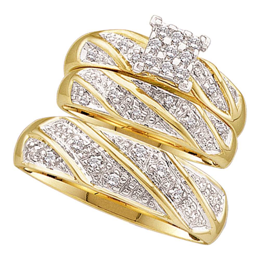 REF-30Y2X- SKU: GD46893 ---- 0.25 CTW His & Hers Diamond Cluster Matching Bridal Ring 10KT Yellow Gold