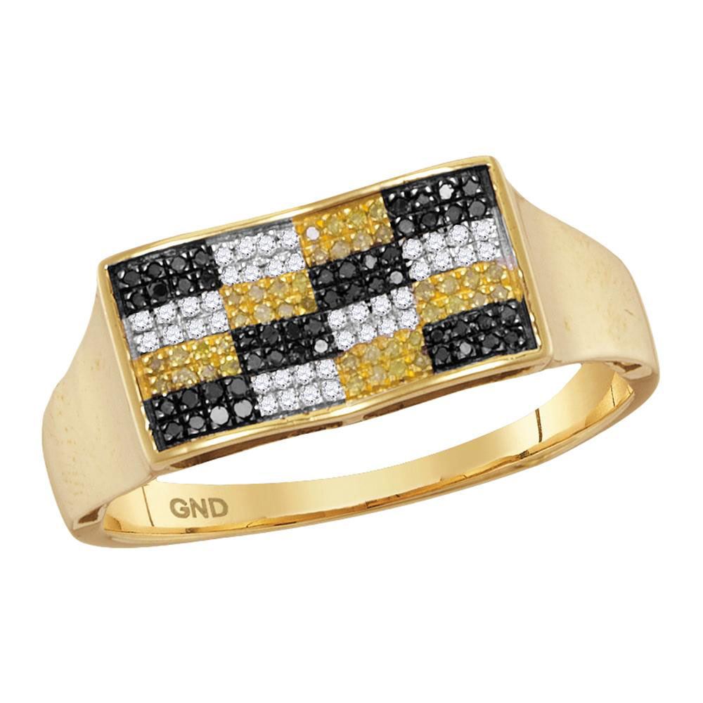 REF-26N9F- SKU: GD67496 ---- 0.25 CTW Mens Black Yellow Color Diamond Checkered Cluster Ring 10KT Yellow Gold