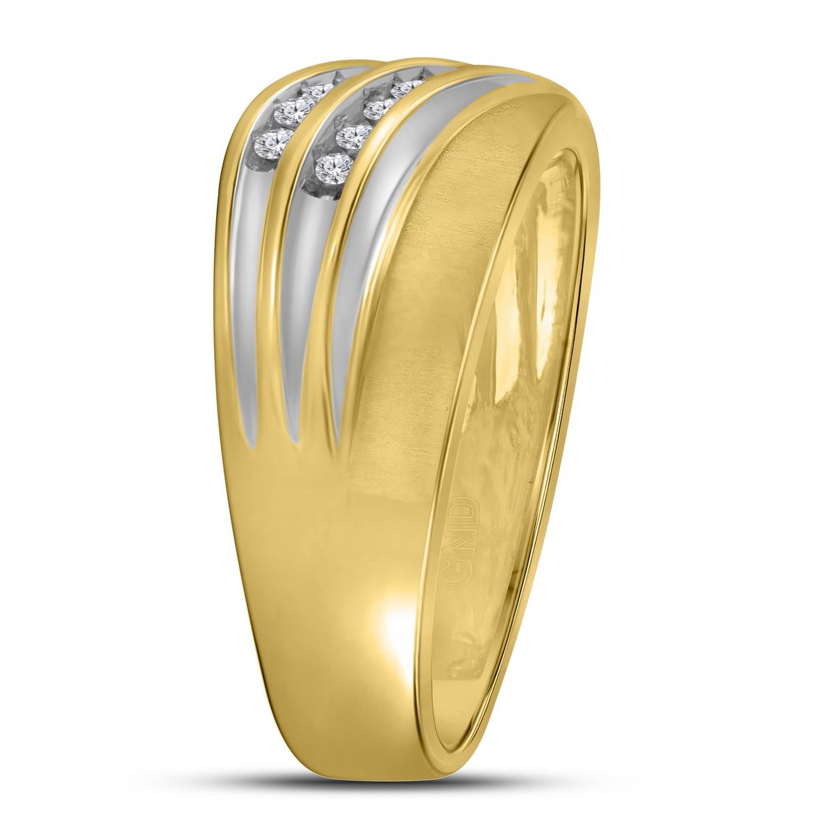 REF-32Y9X- SKU: GD26573 ---- 0.25 CTW Mens Channel-set Diamond Diagonal Double Row Ring 10KT Yellow Two-tone Gold