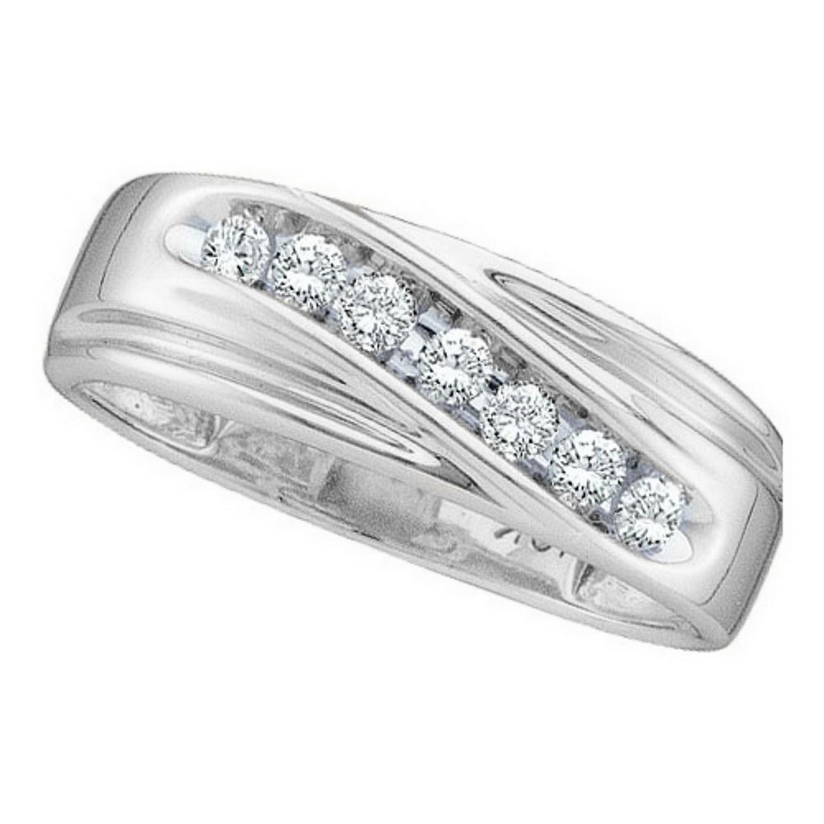 REF-24W2K- SKU: GD11443 ---- 0.25 CTW Mens Channel-set Diamond Single Row Wedding Ring 10KT White Gold
