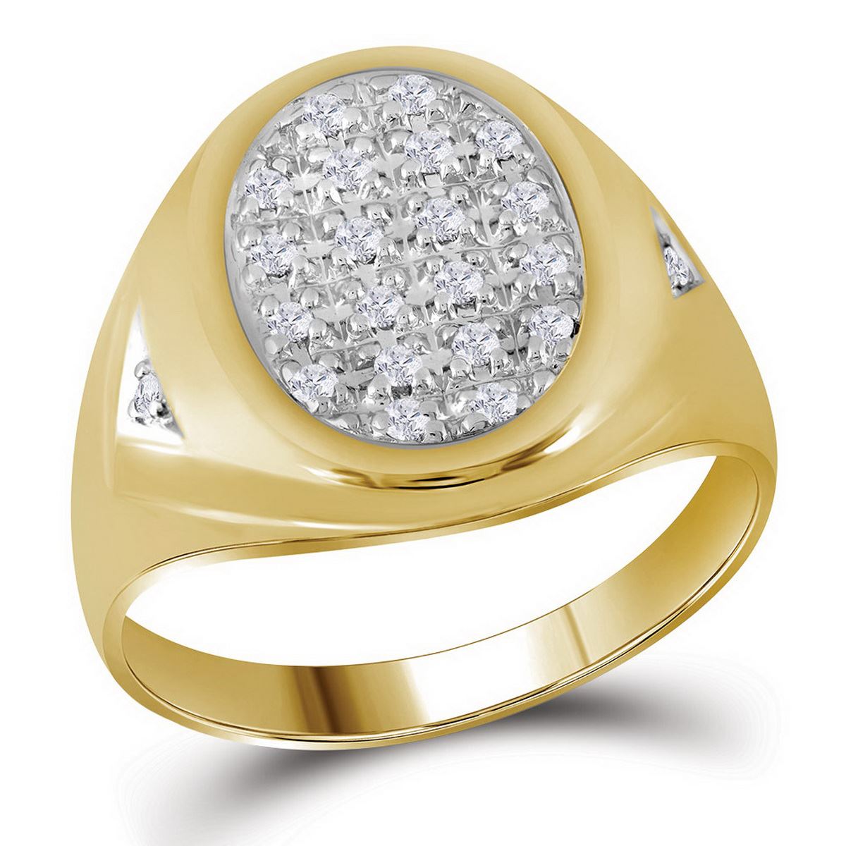 REF-22F4N- SKU: GD7881 ---- 0.25 CTW Mens Prong-set Diamond Oval Cluster Ring 10KT Yellow Gold