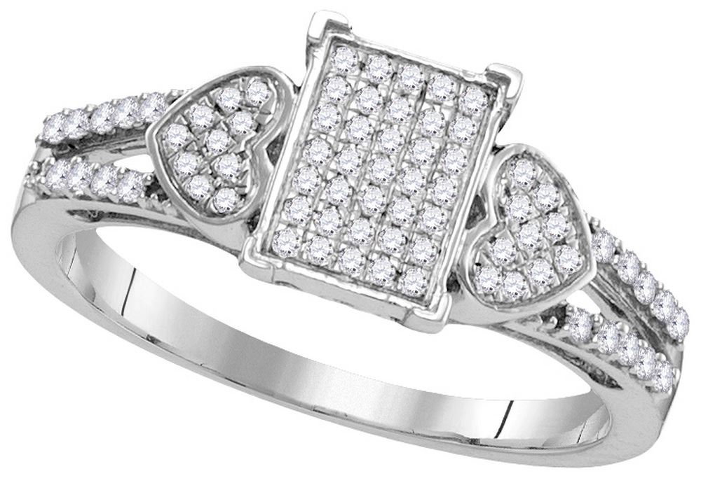 REF-33F8M ---- 0.25 CTW Natural Diamond Double Heart Square Cluster Ring 10K White Gold - SKU: GD55962