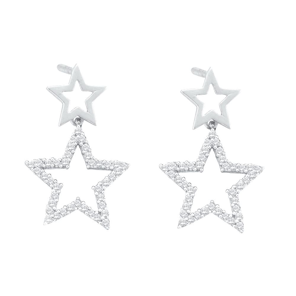 REF-29F9M ---- 0.25 CTW Natural Diamond Star Astronomy Dangle Screwback Stud Fine Earrings 10K White Gold - SKU: GD49964