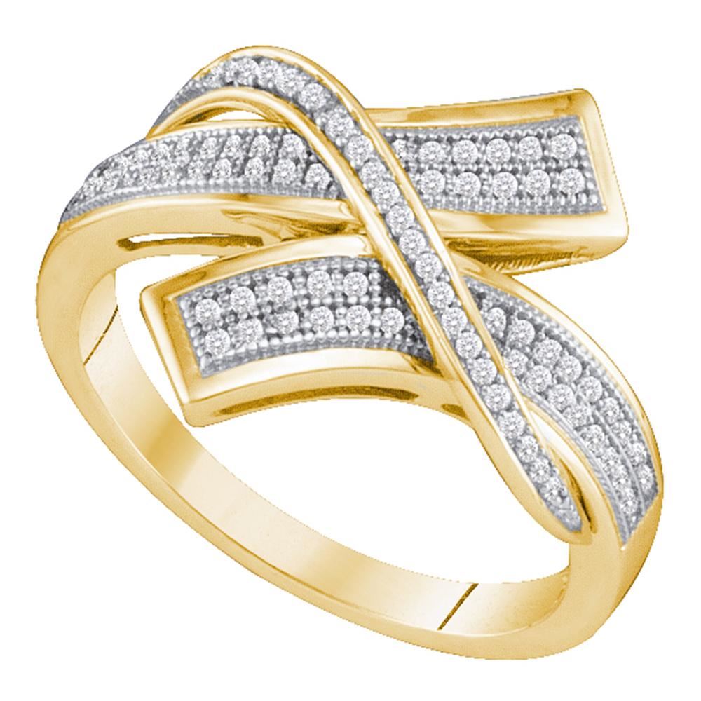 REF-30H2M- SKU: GD64866 ---- 0.25 CTW Pave-set Diamond Crossover Bypass Ring 10KT Yellow Gold