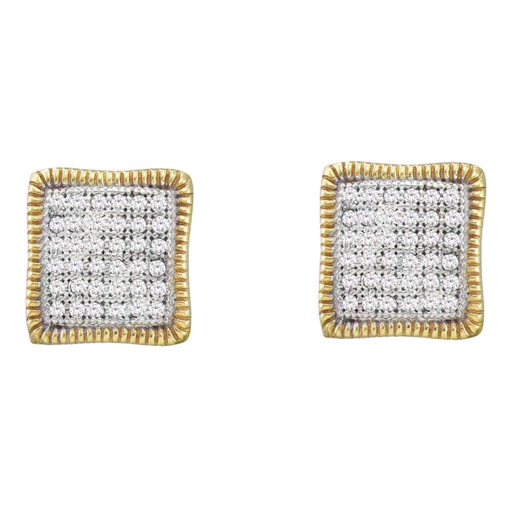 REF-24K2W- SKU: GD55973 ---- 0.25 CTW Pave-set Diamond Square Cluster Milgrain Earrings 10KT Yellow Gold