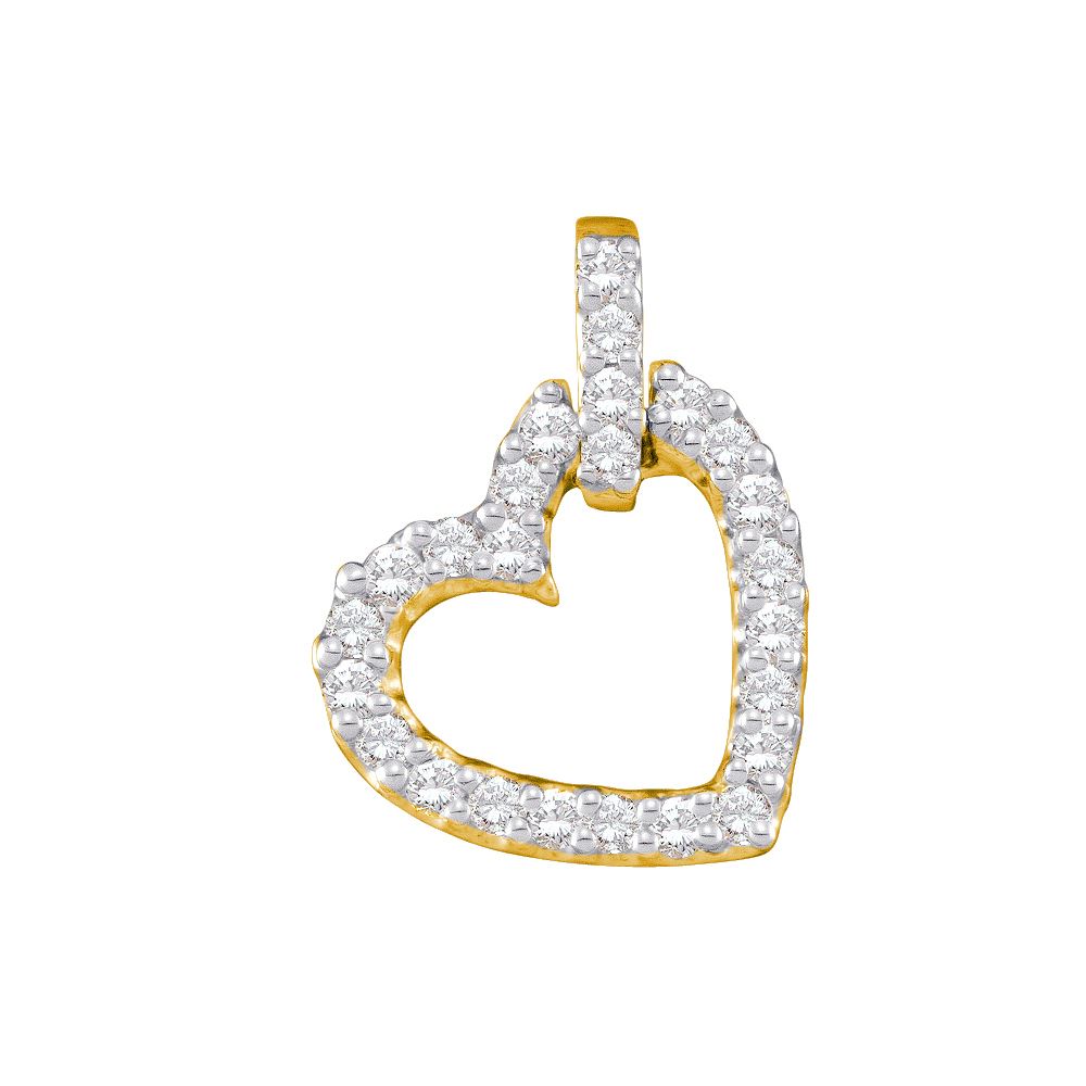 REF-33H8X ---- 0.25 CTW Pave-set Natural Diamond Small Dangling Heart Pendant 14K Yellow Gold - SKU: GD28422