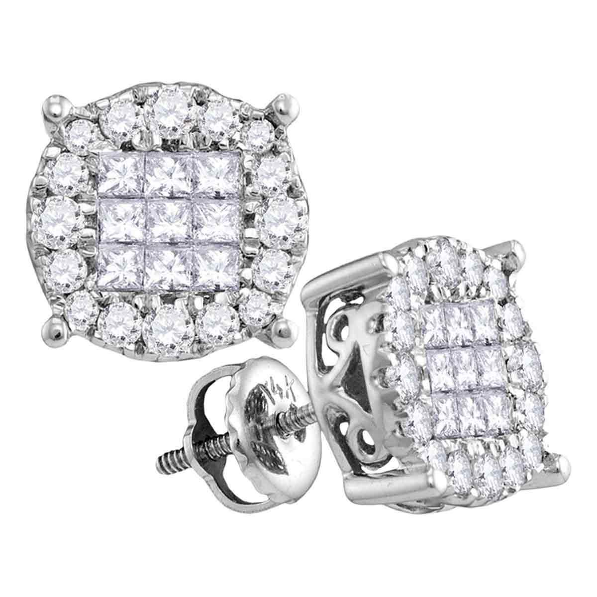 REF-33M7H- SKU: GD111386 ---- 0.25 CTW Princess Diamond Soleil Cluster Stud Earrings 14KT White Gold
