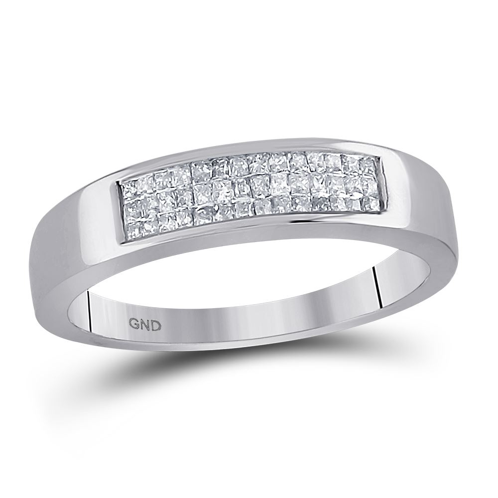 REF-32M9H- SKU: GD18790 ---- 0.25 CTW Princess Invisible-set Diamond Triple Row Ring 14KT White Gold