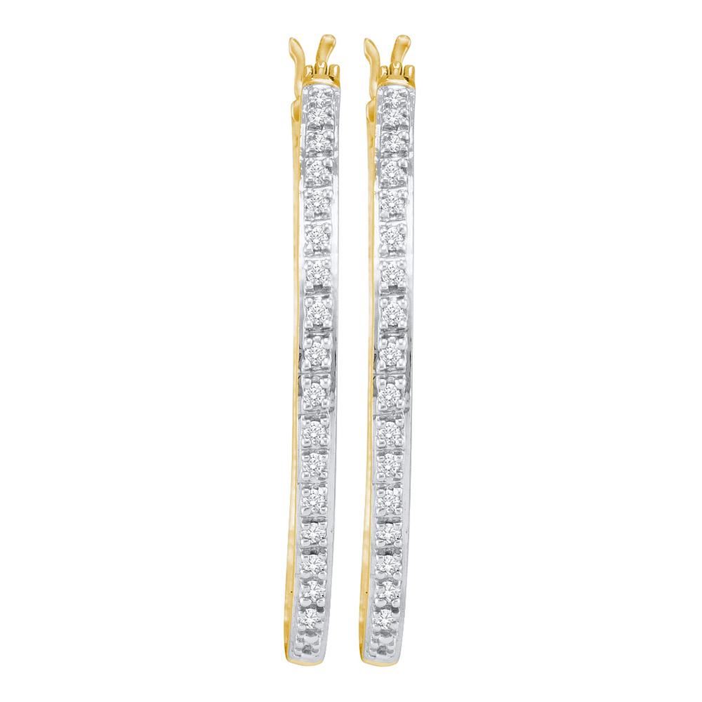 REF-30K2W- SKU: GD15848 ---- 0.25 CTW Prong-set Diamond Slender Single Row Hoop Earrings 10KT Yellow Gold
