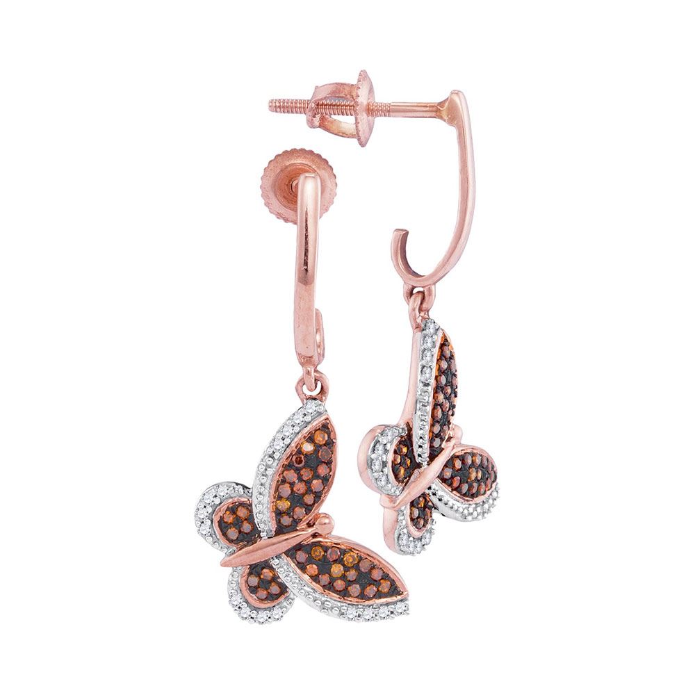 REF-32X9Y- SKU: GD98473 ---- 0.25 CTW Red Color Diamond Butterfly Bug Dangle Earrings 10KT Rose Gold