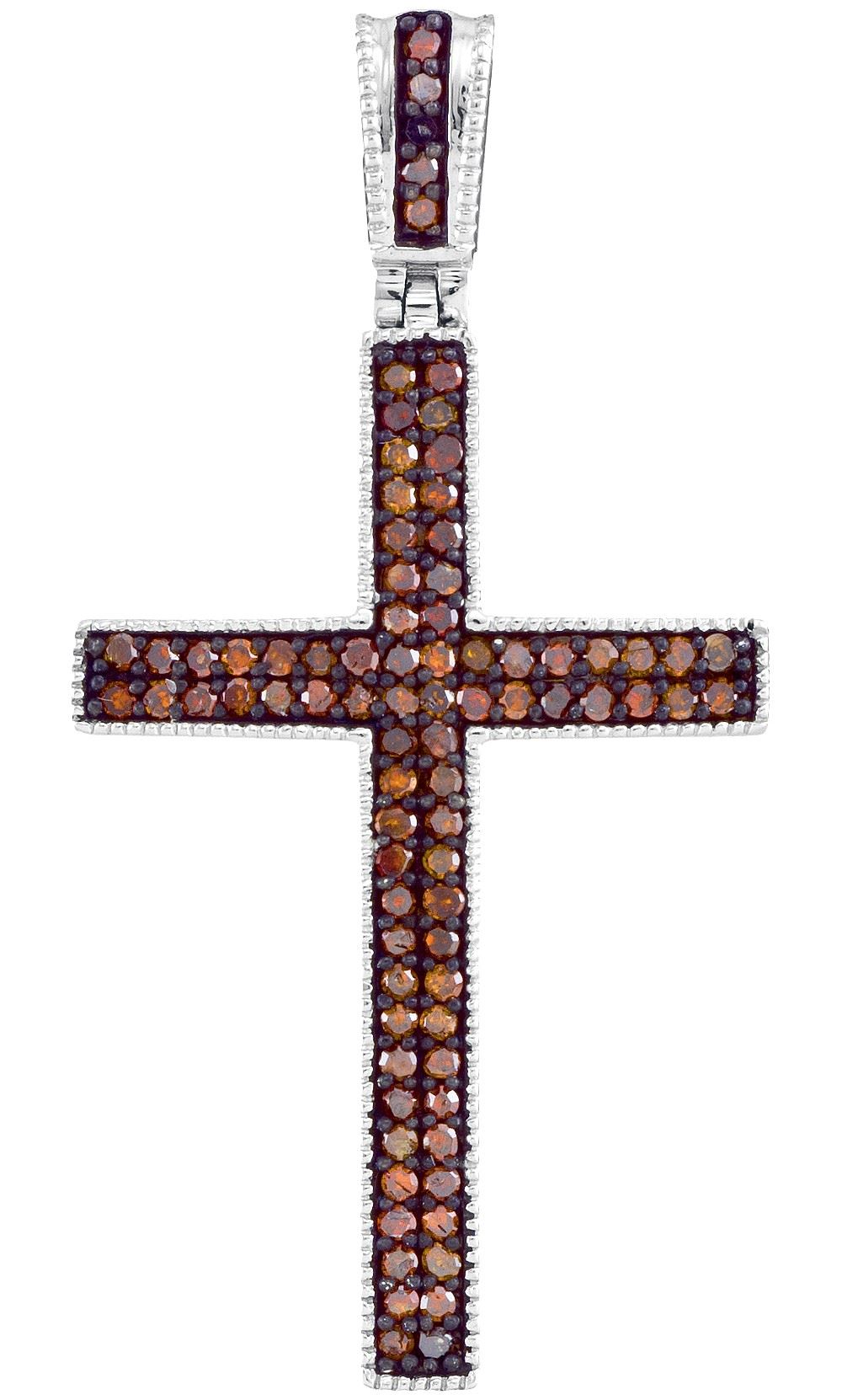 REF-26X9Y- SKU: GD93402 ---- 0.25 CTW Red Color Diamond Cross Pendant 10KT Rose Gold