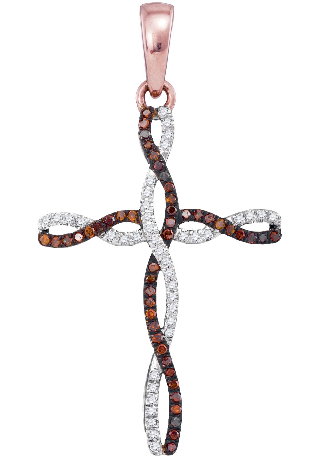 REF-30N2F- SKU: GD93513 ---- 0.25 CTW Red Color Diamond Cross Pendant 10KT Rose Gold