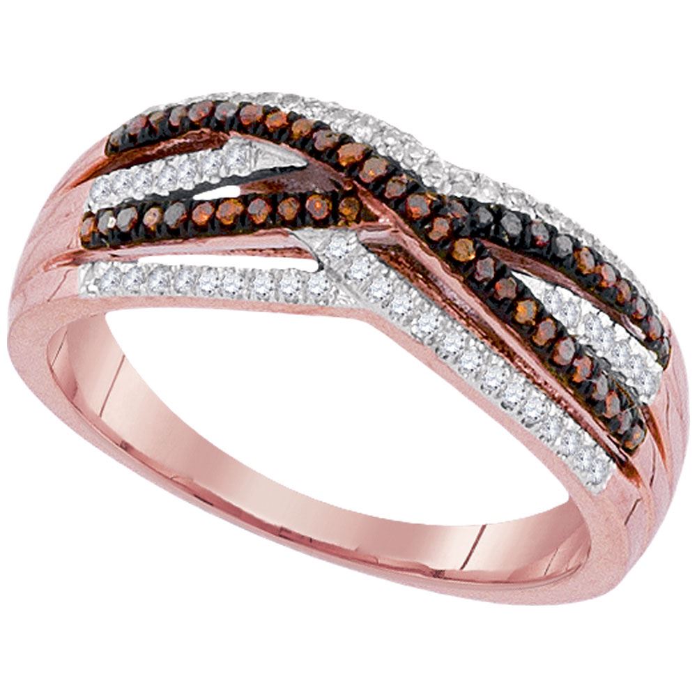 REF-37Y5X- SKU: GD93205 ---- 0.25 CTW Red Color Diamond Crossover Strand Ring 10KT Rose Gold