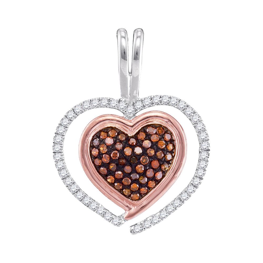 REF-22H4M- SKU: GD97829 ---- 0.25 CTW Red Color Diamond Heart Love Pendant 10KT Two-tone Gold