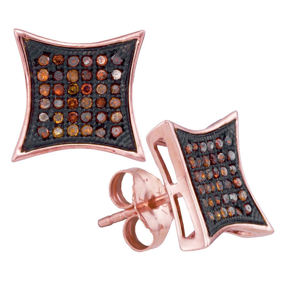 REF-26N9F- SKU: GD93528 ---- 0.25 CTW Red Color Diamond Kite Cluster Earrings 10KT Rose Gold