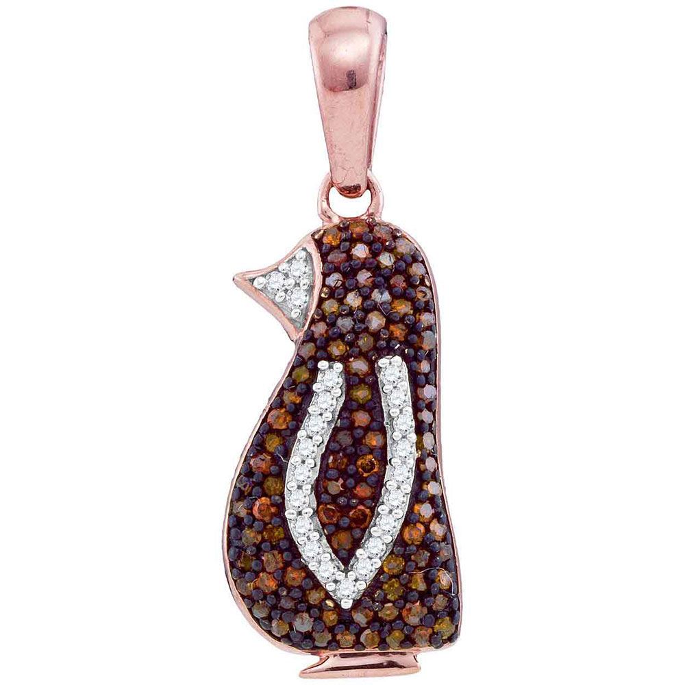 REF-26M9H- SKU: GD93441 ---- 0.25 CTW Red Color Diamond Penguin Bird Pendant 10KT Rose Gold