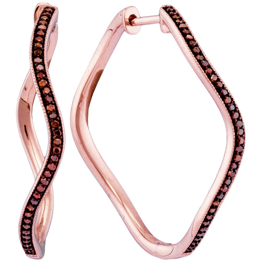 REF-46W4K- SKU: GD97674 ---- 0.25 CTW Red Color Diamond Wavy Hoop Earrings 10KT Rose Gold