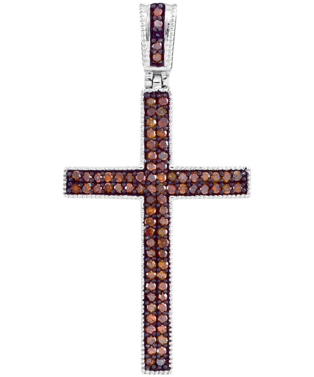 REF-35M9A ---- 0.25 CTW Red Colored Diamond Christian Cross Pendant 10K Rose Gold - SKU: GD93402