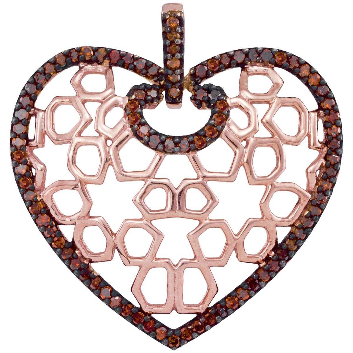 REF-35X9F ---- 0.25 CTW Red Colored Diamond Heart Love Pendant 10K Rose Gold - SKU: GD93450