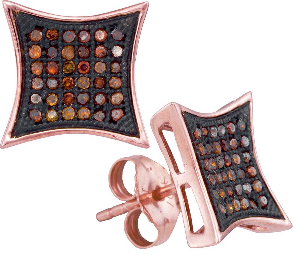 REF-35W9H ---- 0.25 CTW Red Colored Diamond Kite Cluster Earrings 10K Rose Gold - SKU: GD93528