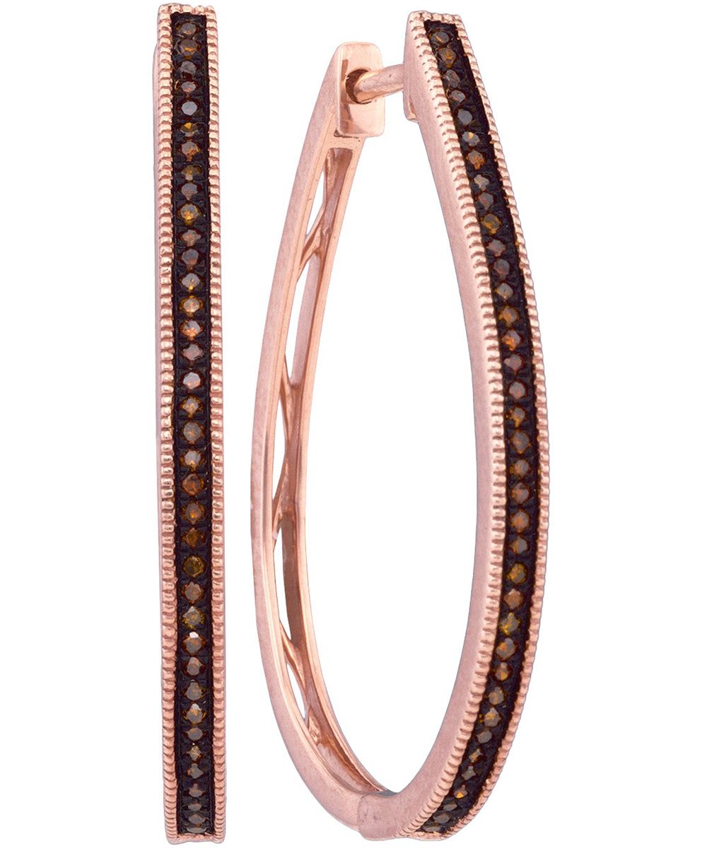 REF-50Y2V ---- 0.25 CTW Red Colored Natural Diamond Slender Large Unique Hoop Earrings 10K Rose Gold - SKU: GD89970
