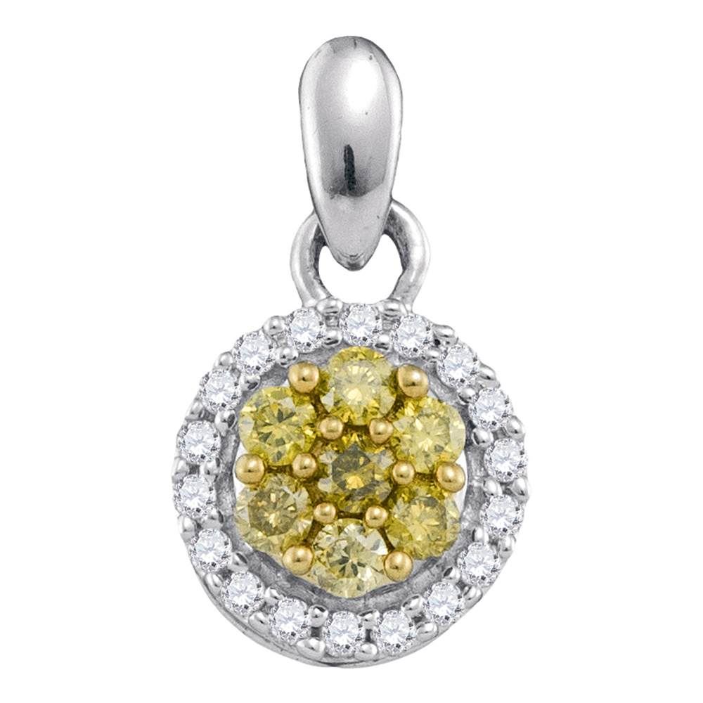 REF-16W4K- SKU: GD92646 ---- 0.25 CTW Yellow Color Diamond Circle Cluster Pendant 10KT White Gold