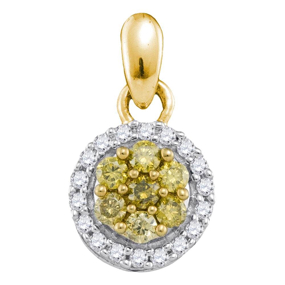 REF-16Y4X- SKU: GD92645 ---- 0.25 CTW Yellow Color Diamond Circle Cluster Pendant 10KT Yellow Gold