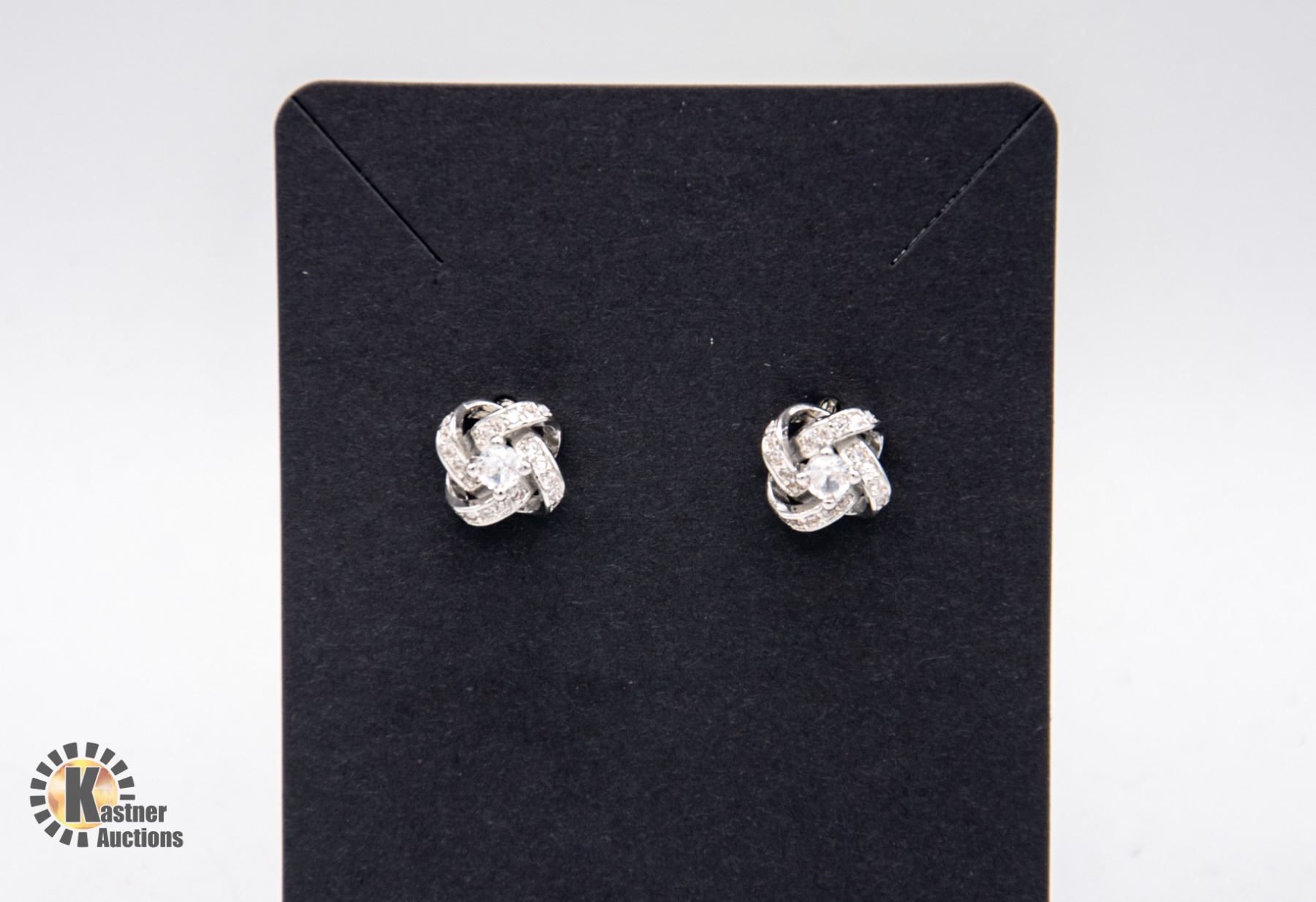 0.25 CZ CENTER RIBBON STYLE EARRINGS STAMPED 925