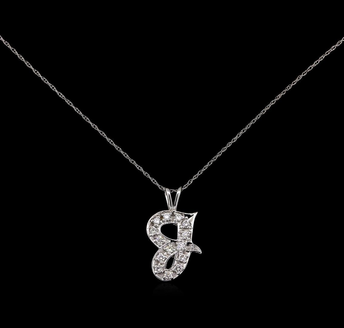 One "g" initial pendant with chain featuring: 14KT white gold weighing 2.40 grams containing diamonds with a total weight of 0.25ct.