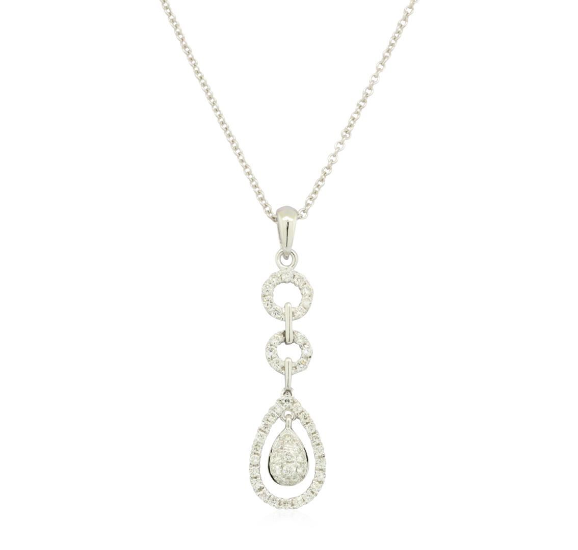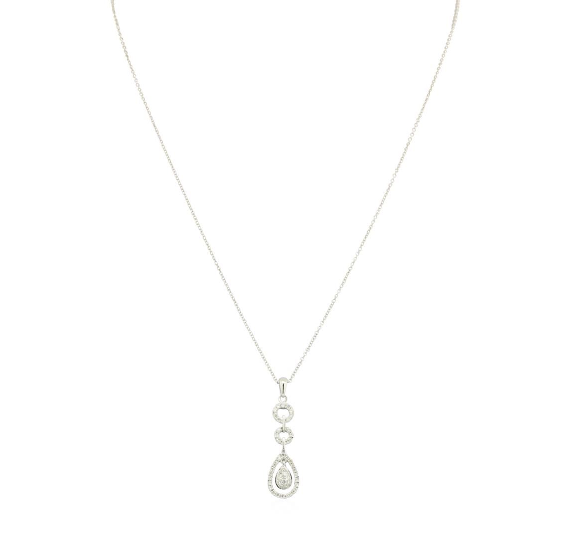 One lady's pendant with chain featuring: 14KT and 18KT white gold weighing 2.5 grams containing diamonds weighing 0.25ctw. The pendant has a chain measuring approximately sixteen inches in length.
