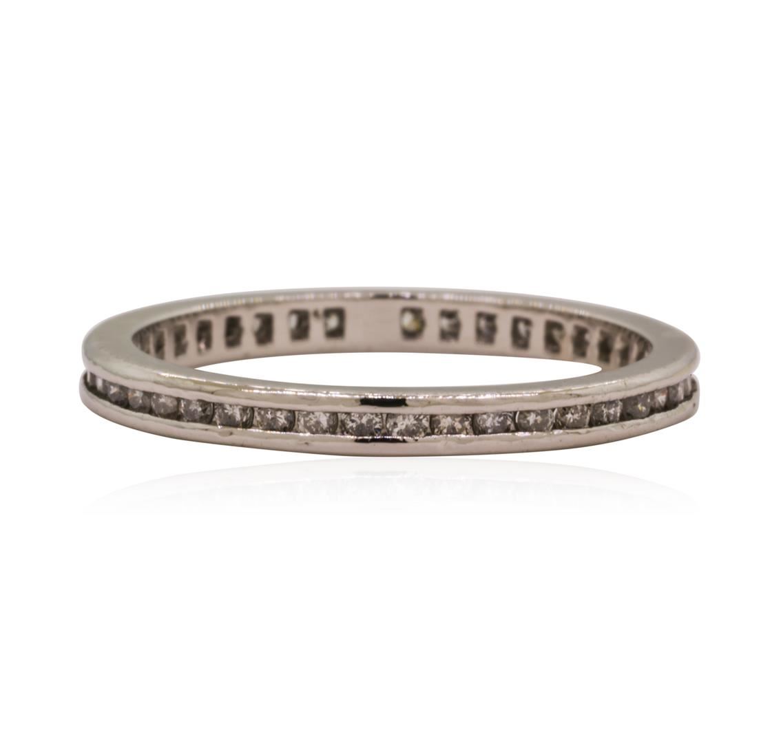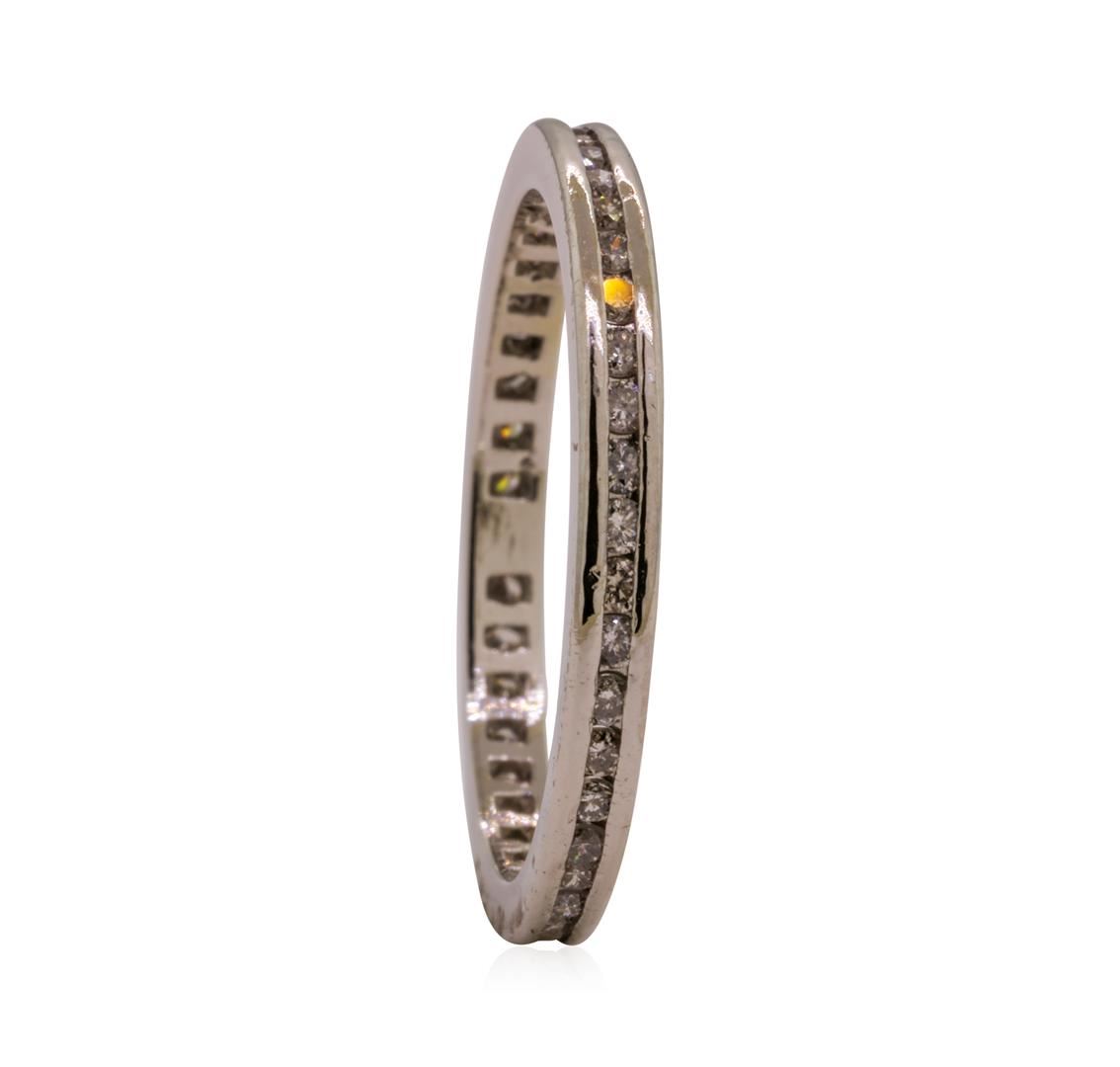 One lady's eternity ring featuring: 14KT white gold weighing 2.7 grams containing diamonds weighing 0.25ctw.