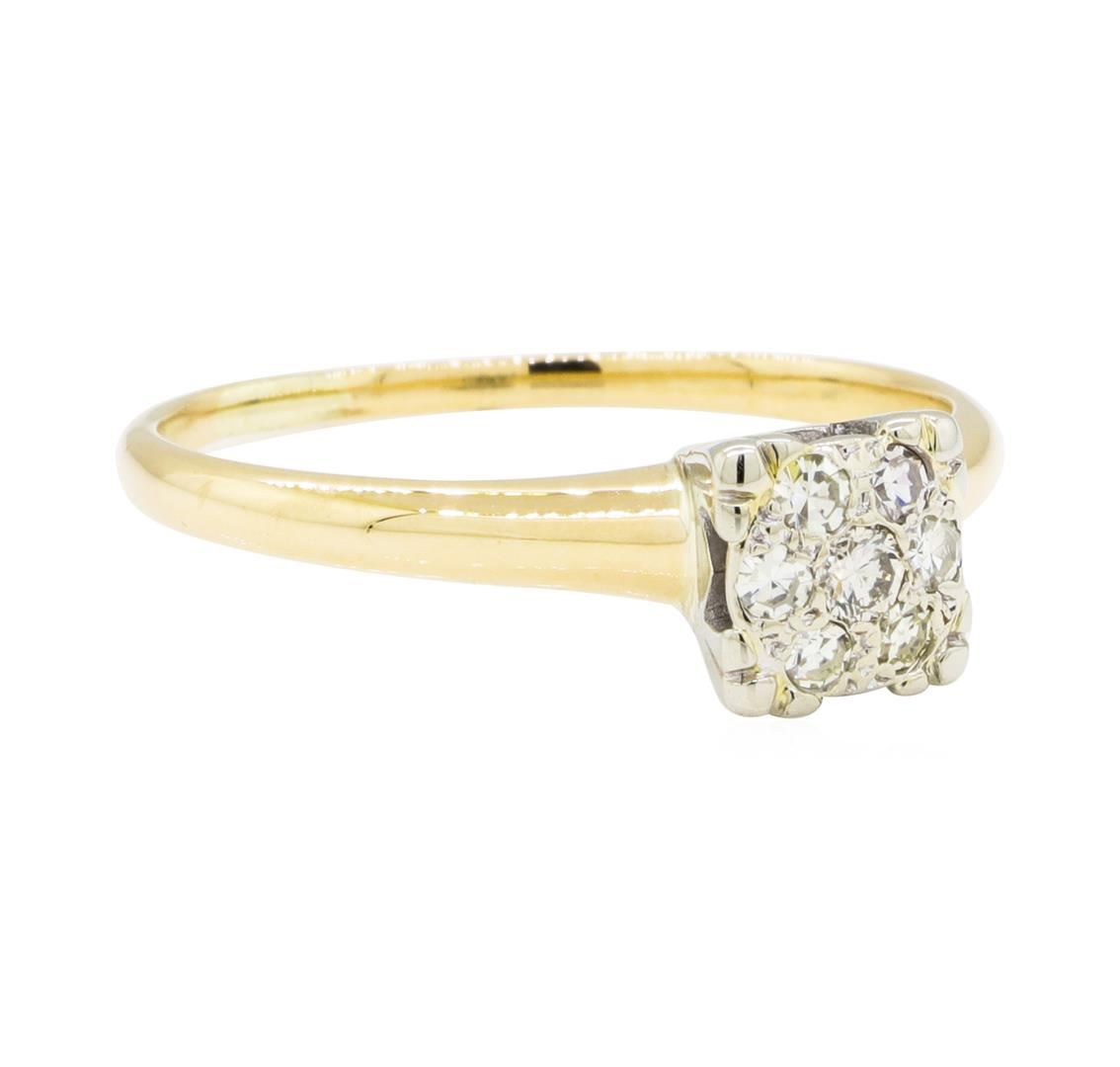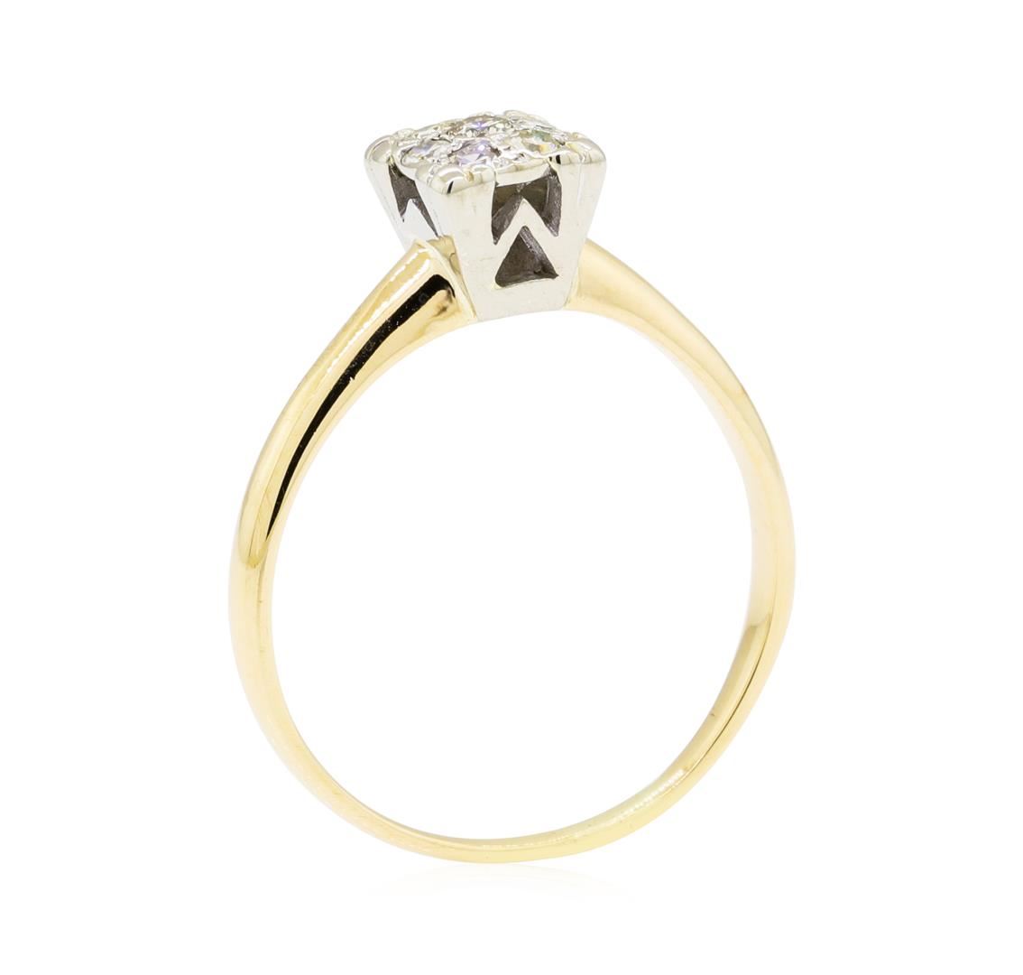 One lady's ring featuring: 14KT yellow gold weighing 2.5 grams containing diamonds weighing 0.25ctw.