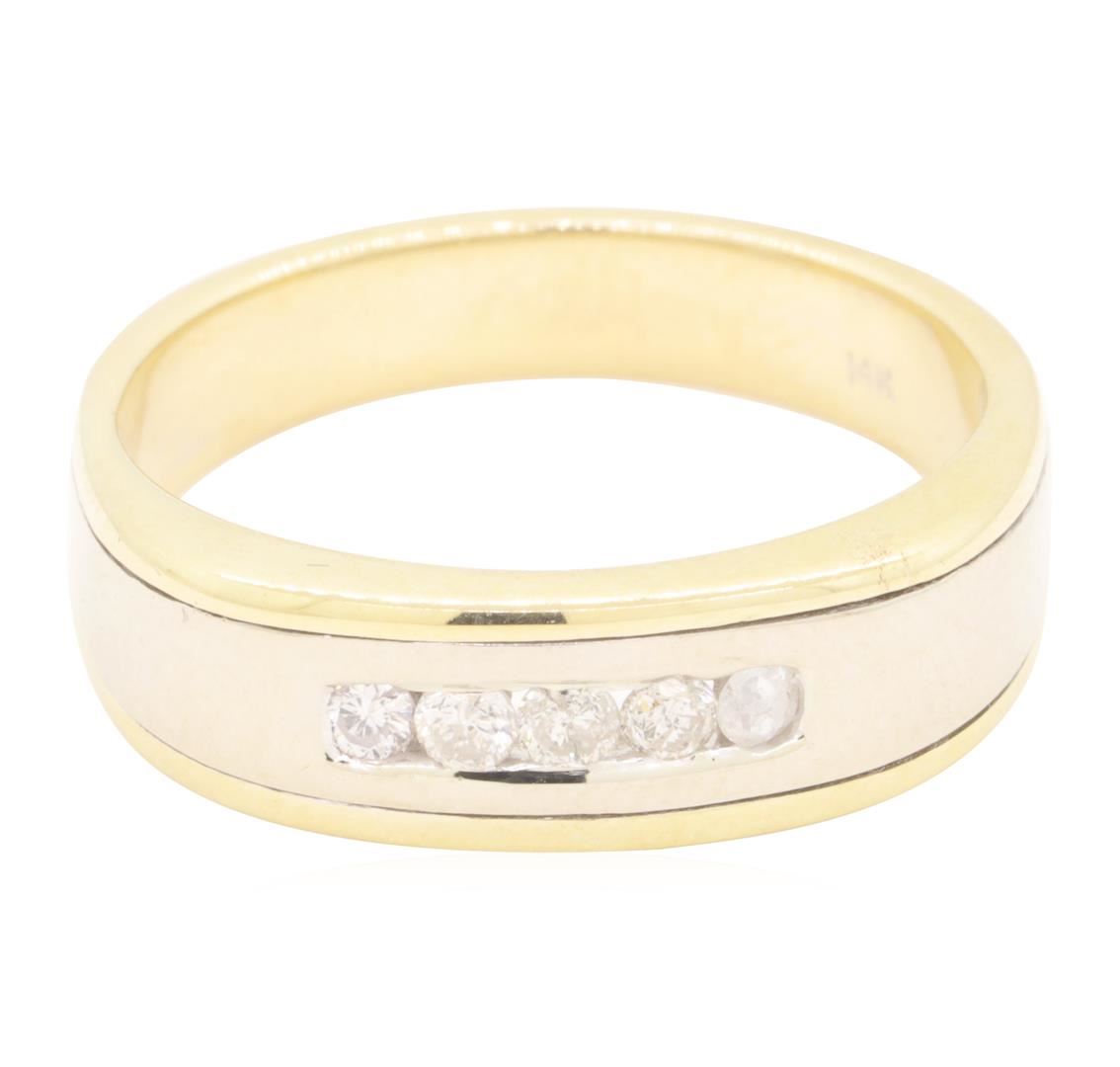 One men's ring featuring: 14KT yellow and white gold weighing 8.0 grams containing diamonds weighing 0.25ctw.