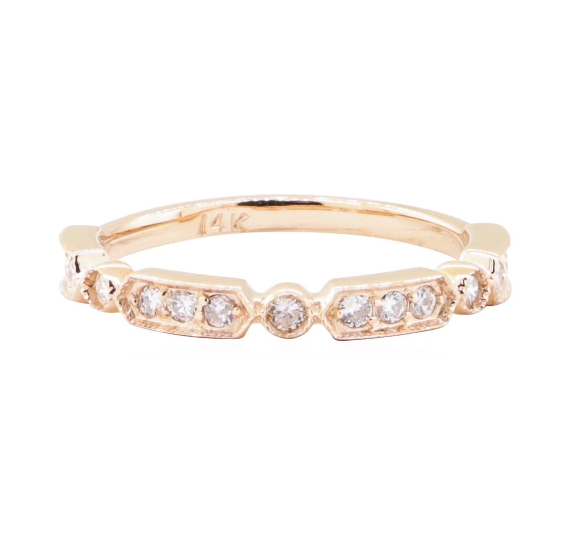 One straight-line station ring with milgrain detailing featuring: 14KT rose gold weighing 2.3 grams containing diamonds weighing 0.25ctw.