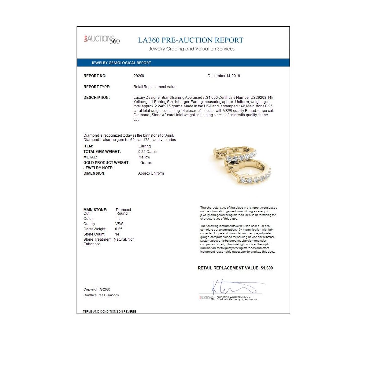 REF-24N5F - SKU: 29208 ---- 0.25 ctw Diamond VS/SI Hoop Earrings 14k Yellow Gold