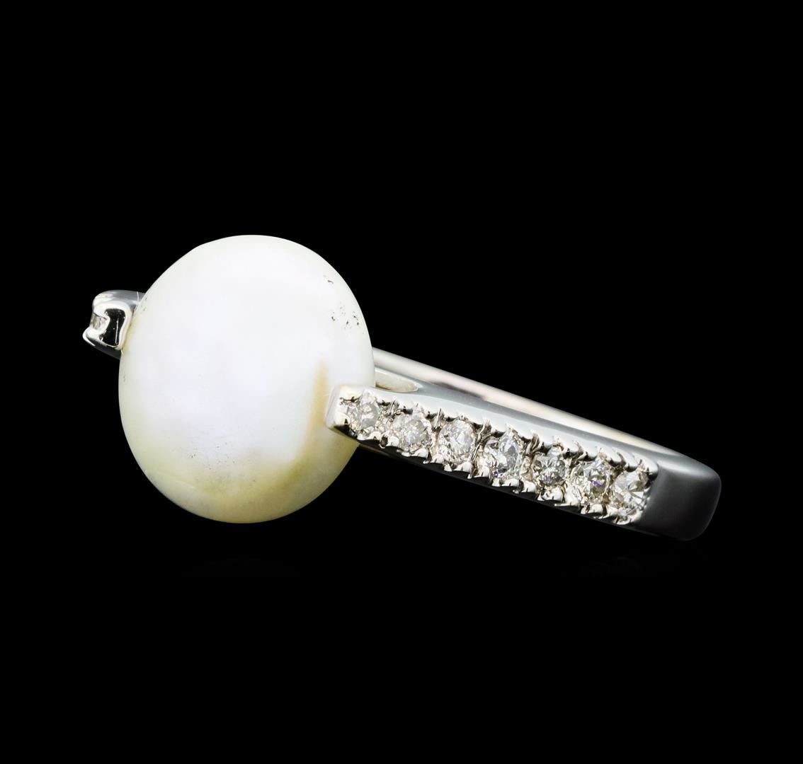 One ring featuring: 14KT white gold weighing 3.50 grams containing one pearl and diamonds weighing 0.25ctw.