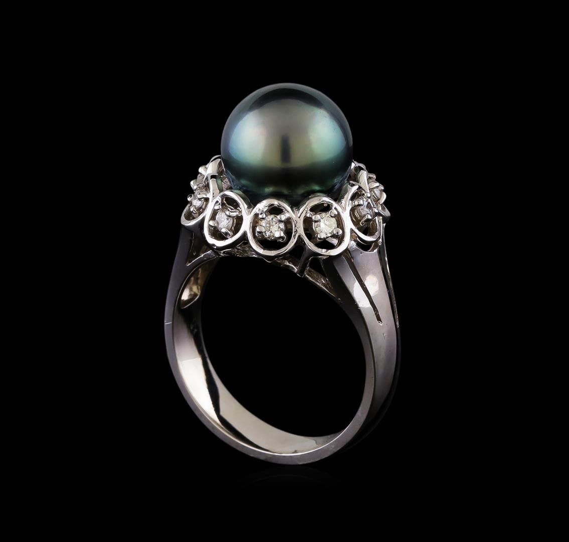 One ring featuring: 14KT white gold weighing 6.38 grams containing one pearl and diamonds weighing 0.25ctw.
