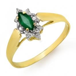 Gemstone: Natural Emerald Gemstone color: Green Gemstone quality: Good-to-Very Good Gemstone Cut & Weight: 1 Marquise cut @ 0.25 ctw Metal Purity & Color : 10K Gold-YellowGold weight: 1.40 grams Ring size (US): 6.5 Dimension: Approx. 3/8" x 1/4"