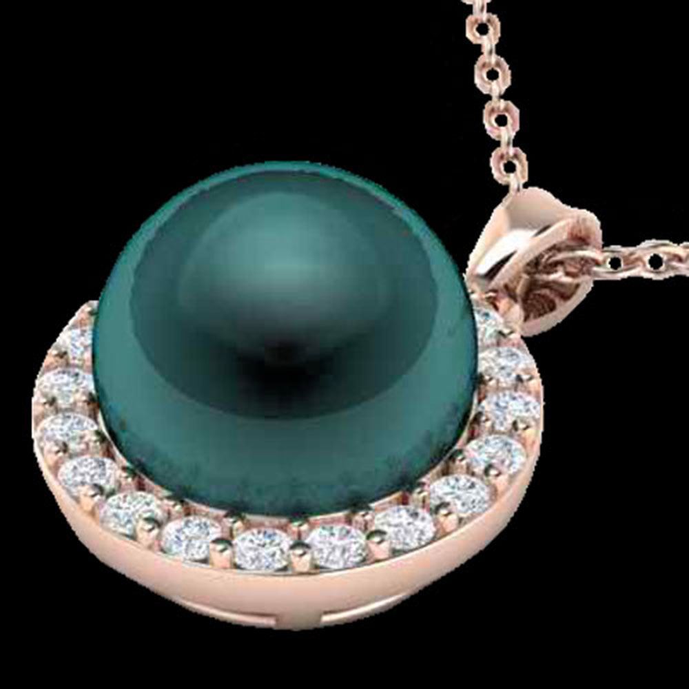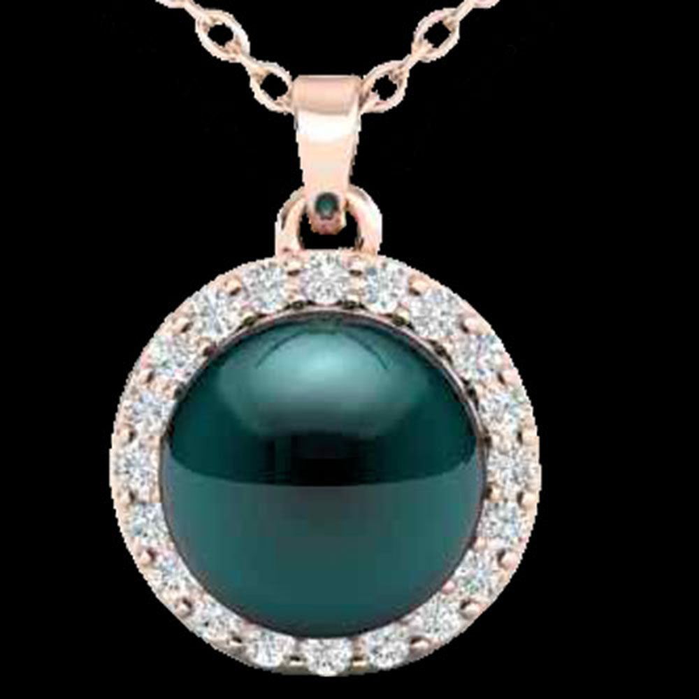 REF-25H4R - SKU: 21570 ---- 0.25 ctw Micro Pave Diamond & Peacock Pearl Necklace 14k Rose Gold