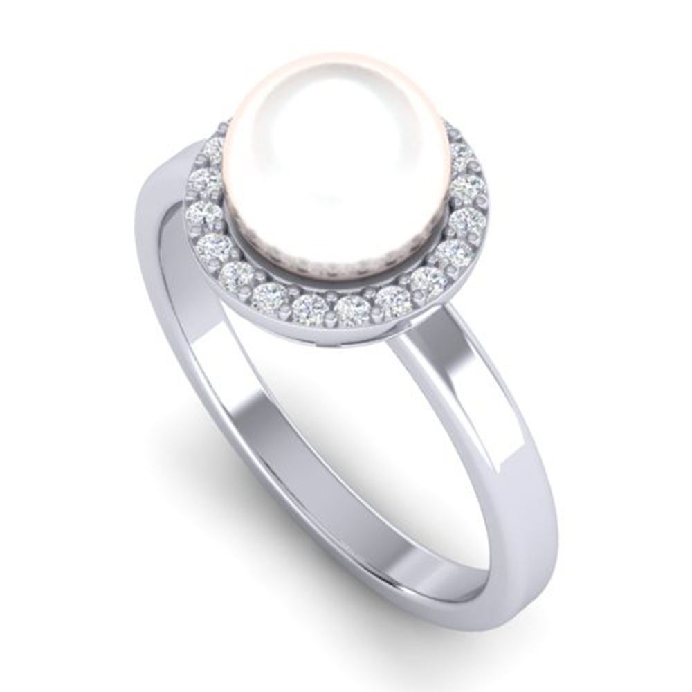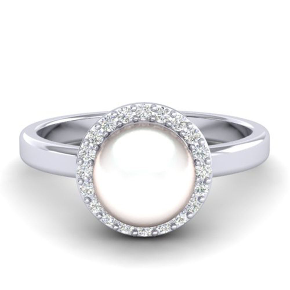 REF-41H6R - SKU: 21646 ---- 0.25 ctw Micro Pave VS/SI Diamond Certified & Pearl Ring 18k White Gold