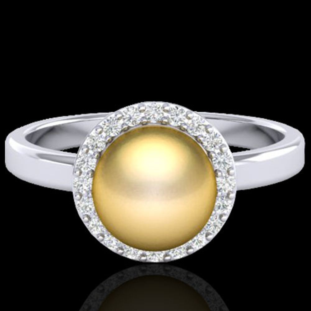 REF-41K6Y - SKU: 21631 ---- 0.25 ctw Micro Pave VS/SI Diamond & Golden Pearl Ring 18k White Gold