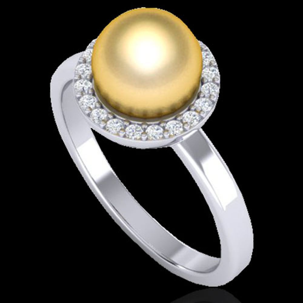 REF-41K6Y - SKU: 21631 ---- 0.25 ctw Micro Pave VS/SI Diamond & Golden Pearl Ring 18k White Gold